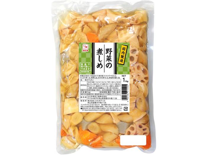 野菜の煮しめ《12袋入》 竹の子、こんにゃく、れんこん、ごぼう、人参を彩りよくあわせ、煮しめに仕上げました。 野菜の旨味をそのままに残し、上品な味付けです。 具材のサイズがそろっているため、盛り付けやすく、お弁当のおかずに、インストアーリパックに、バイキングにもぴったりです。 こちらは会員登録されない方(ゲスト購入の方)のページです。 会員の方はこちらから、商品をお選びください。 販売価格 21,816円(税込み) 会員価格 (税込み) 通常価格 (税込み) 在庫 商品コード 08002 JANコード 数量 - + カートに入れる カテゴリー 業務用惣菜(ケース販売) 内容量 1kg×12 商品サイズ 縦300×横200×高さ32(mm) ケースサイズ 縦405×横280×高さ220(mm) 賞味期間 製造日より12ヵ月(常温、開封前) 保存方法 直射日光、高温多湿をさけて保存してください。 使用上の注意 開封後は冷蔵庫で保管し、早めにお召し上がりください。 ※販売価格、パッケージデザイン、原材料などは予告なく変更となる場合がございます。 RECOMMENDEDおすすめアイテム きんぴられんこん《12袋入》 20,952円(税込み) きんぴらごぼう《12袋入》 24,840円(税込み) 五目ひじき《12袋入》 18,360円(税込み) 切干大根《12袋入》 16,848円(税込み) CATEGORYカテゴリー 会員の方はこちら おつまみ・俺の贅沢シリーズ おつまみ・珍味その他 チップス 煮豆・佃煮 チキンライスの素・炒飯の素 業務用惣菜(ケース販売) 詰合せセット 会員登録されない方はこちら おつまみ・俺の贅沢シリーズ おつまみ・珍味その他 チップス 煮豆・佃煮 チキンライスの素・炒飯の素 業務用惣菜(ケース販売) 詰合せセット 2026年01月 日 月 火 水 木 金 土 1 2 3 4 5 6 7 8 9 10 11 12 13 14 15 16 17 18 19 20 21 22 23 24 25 26 27 28 29 30 31 2026年02月 日 月 火 水 木 金 土 1 2 3 4 5 6 7 8 9 10 11 12 13 14 15 16 17 18 19 20 21 22 23 24 25 26 27 28 定休日